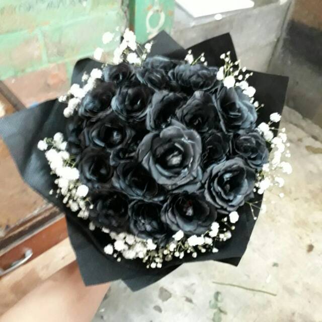 Handbuqet Mawar Hitam Mix Baby Breath Kado Ultah Bunga Wisuda Shopee Indonesia