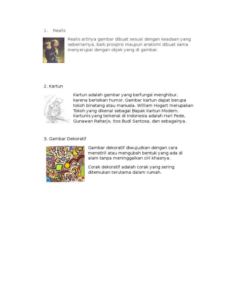 1 Realis Realis Artinya Gambar Dibuat Sesuai Dengan Keadaan Yang Sebernarnya Baik Prooprsi Maupun Anatomi Dibuat Sama Menyerupai Dengan Objek Yang Di Gambar