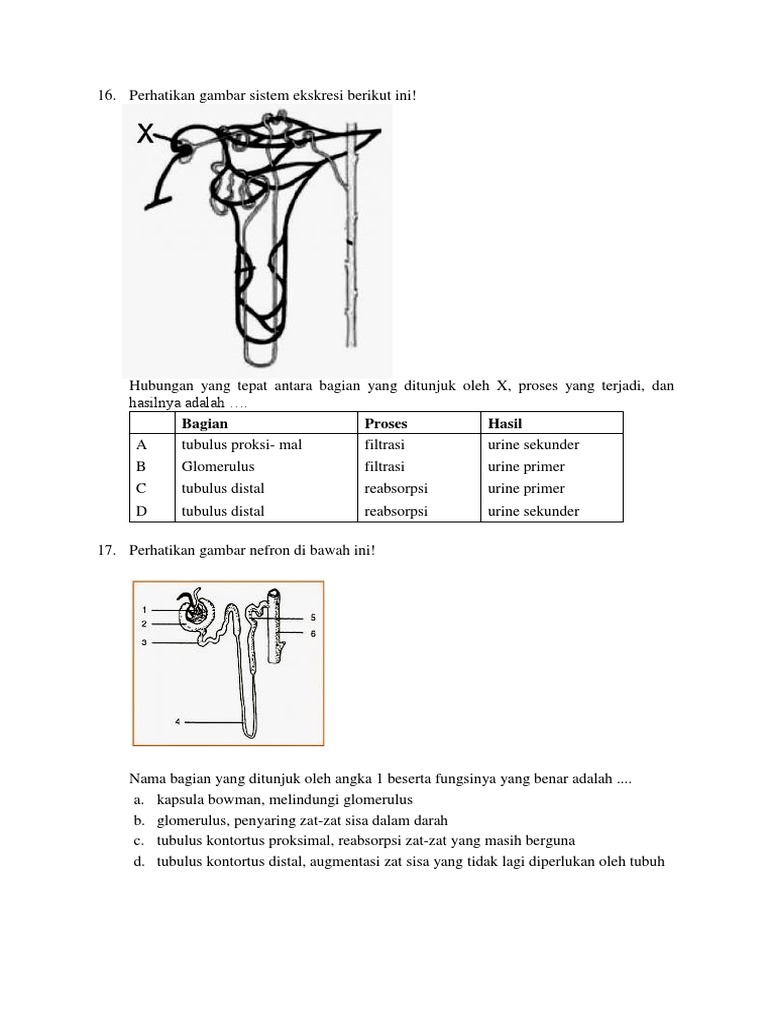 Kunci Jawaban Perhatikan Gambar Nefron Ginjal Berikut Bagian X Merupakan Tempat Berlangsungnya Proses Rofa Education Centre