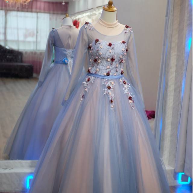 Weddindress Preloved Baju Pernikahan Silver Prewedding Gown Gaun Muslimah Syar I Shopee Indonesia