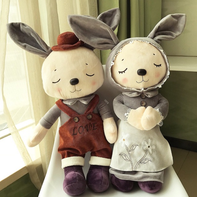 Sepasang Isi 2 Boneka Kelinci Rabbit Bunny Plush Bulu Lembut Lengkap Dg Kostum Gaya Korea Import Shopee Indonesia